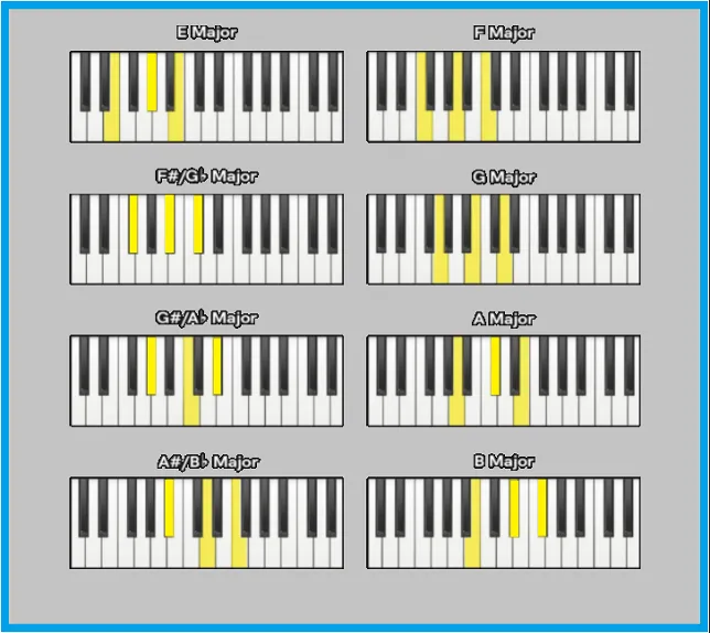 Podstawowe akordy pianino dzielą się na kilka charakterystycznych typów. Każdy z nich ma unikalne brzmienie i zastosowanie w muzyce.